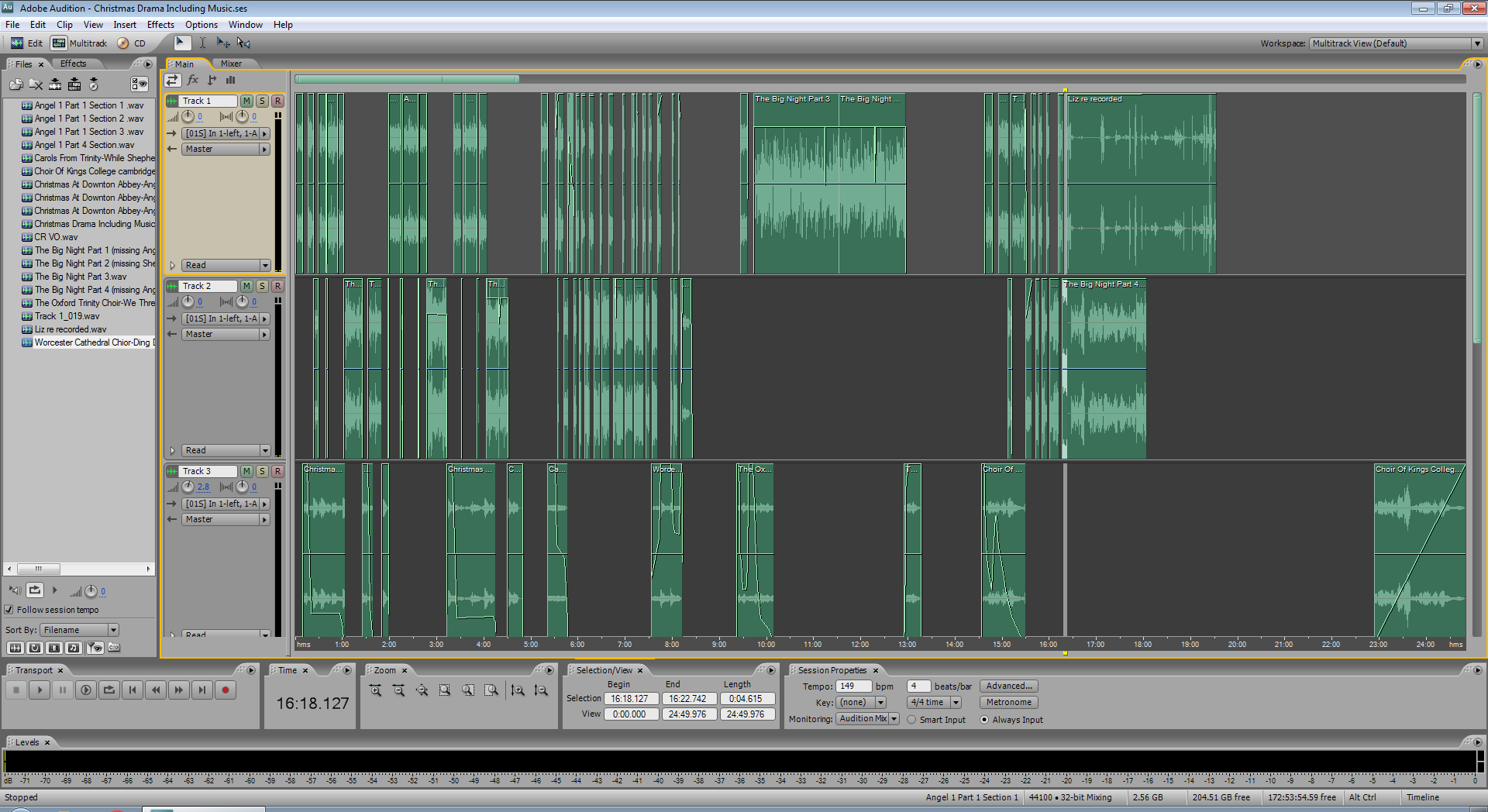 It’s also somewhat of a unique production, having been put together from a variety of voices many miles apart using the magic of technology to make it all work. That’s made the editing a little more complex (as you can see from the screen-shot of our editing computer) but we’re quite excited about it! Look out for news in the run up to Christmas as to when you will be able to hear the finished production!