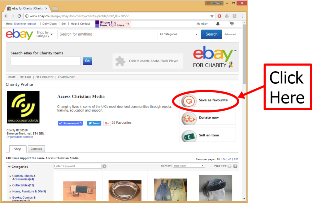 2. Click on “Save as Favourite” (you may have to log in to your Ebay account)